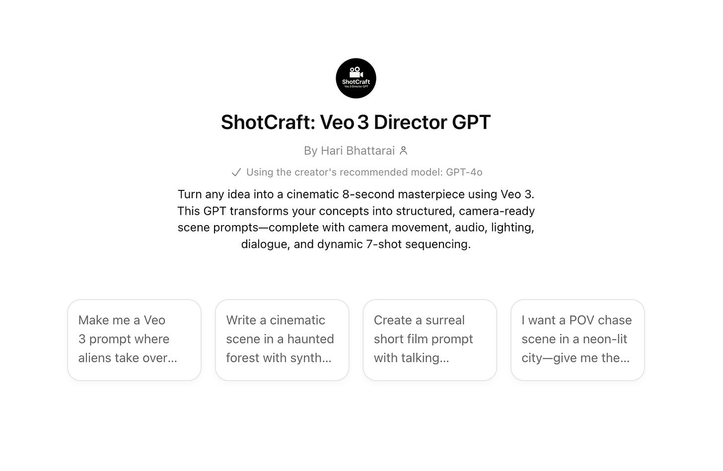 Custom GPT that turns any idea into a working JSON prompt for Veo3.